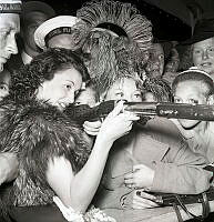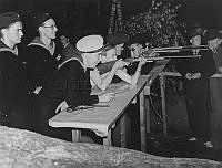 Här på Gröna Lund, En grupp glada sjömän på landpermission hjälper till att pricka rätt med geväret vid ett av nöjesfältets attraktioner. Sverige 1944