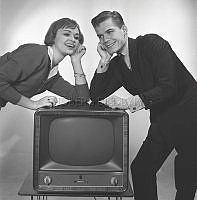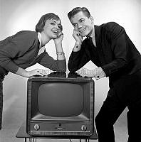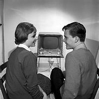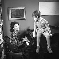 Saga Sjöberg (1911-1997) Svensk skådespelare och sångare Här hemma hos där hon och sonen Björn Holmsten (f. 1942) svensk jazzmusiker spelar piano 1946