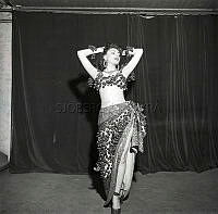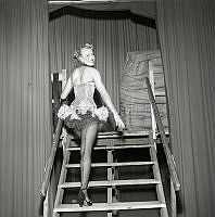 Eva Dahlbeck , 1920-2008 , svensk skådespelerska. Här i samband med inspelningen av långfilmen Två kvinnor som hade premiär 1947. I filmen gör hon rollen som nattklubbssångerskan Sonja. Publicerad i Filmjournalen nr 51-51 1946