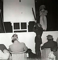 Urpremiären av Povel Ramels första Knäppupp revy Akta Huvet! på i Göteborg på Lorensbergs cirkus den 10 oktober 1952. En dansare ur balettruppen Black diamonds går runt i publiken och gör typiskt tokiga saker.